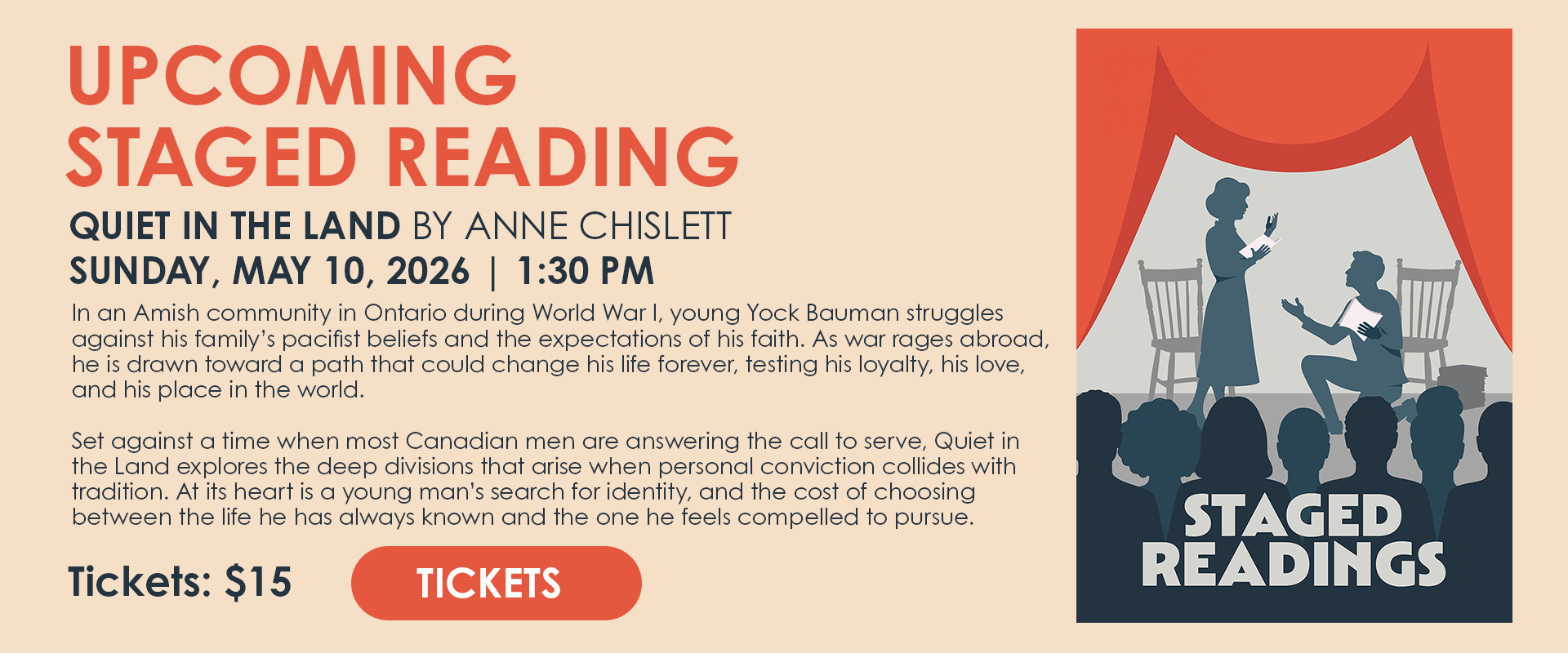 Get your tickets now and join us for this witty, warm-hearted celebration of life, love, and the unpredictability of live theatre!